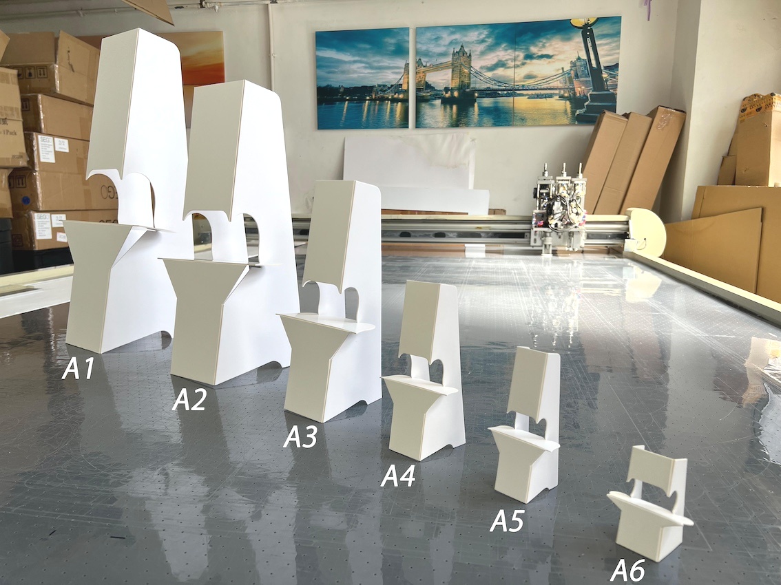 A6, stand size: 6cm(w) x 8cm(h) x 4cm(d),